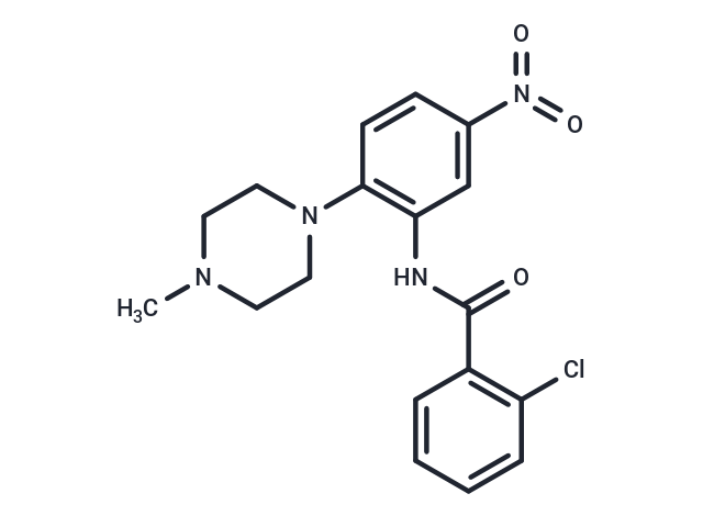 SMILESN(C(=O)C1=C(Cl)C=CC=C1)C2=C(C=CC(N(=O)=O)=C2)N3CCN(C)CC3