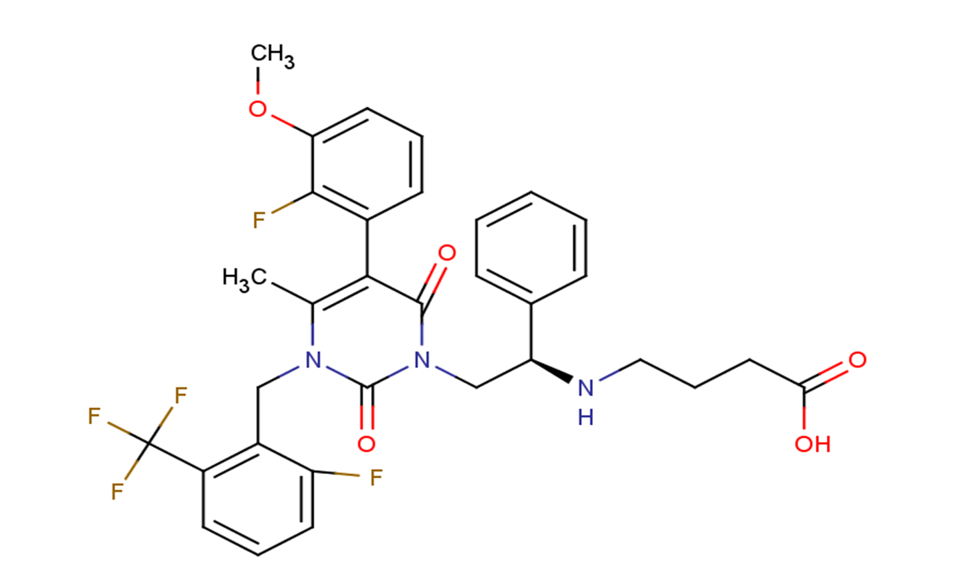 (R)-Elagolix 是一种短效非肽 GnRH 拮抗剂,IC50 和 Ki 分别为 0.25 和 3.7 nM。