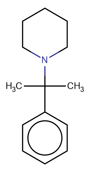 2-Phenyl-2-(1-piperidinyl)propane ( —— )