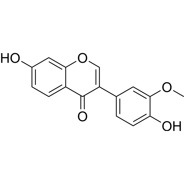3'-Methoxydaidzein is a dual isoflavone and Sodium Channel inhibitor. 3'-Methoxydaidzein inhibited NaV1.7, NaV1.8 and NaV1.3 with IC50 of 181 nM, 397 nM and 505 nM, respectively.