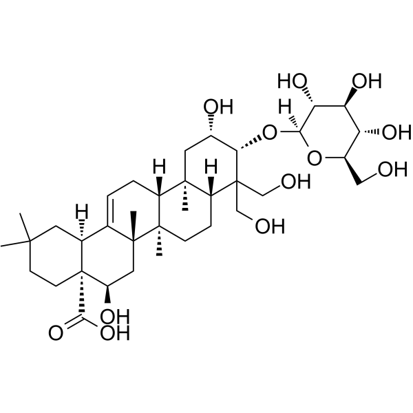 SMILES[H][C@@]12CC(C)(C)CC[C@@]1([C@H](O)C[C@]1(C)C2=CC[C@]2([H])[C@@]3(C)C[C@H](O)[C@H](O[C@@H]4O[C@H](CO)[C@@H](O)[C@H](O)[C@H]4O)C(CO)(CO)[C@]3([H])CC[C@@]12C)C(O)=O