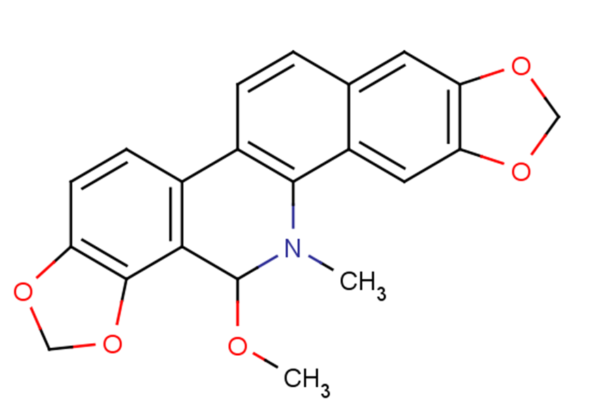 6-甲氧基二氢血根碱是一种天然产物。 6-Methoxydihydrosanguinarine 对 MCF-7 和 SF-268 细胞系表现出强烈的细胞毒性,IC50 值分别为 0.61 μM 和 0.54 μM。