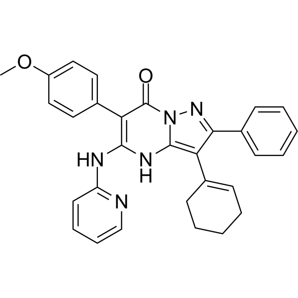 SMILESCOc(cc1)ccc1C(C(n1nc2-c3ccccc3)=O)=C(Nc3ncccc3)Nc1c2C1=CCCCC1