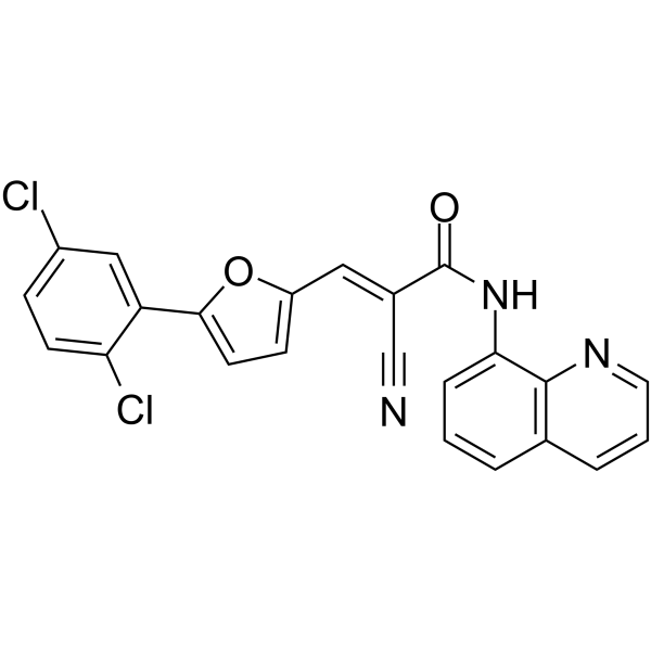 SMILESClc1ccc(Cl)c(c1)-c1ccc(\C=C(/C#N)C(=O)Nc2cccc3cccnc23)o1