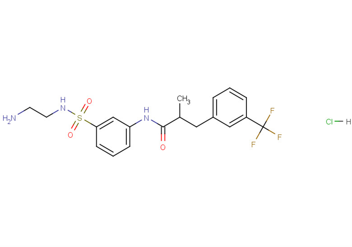 SMILESO=C(NC1=CC=CC(S(=O)(NCCN)=O)=C1)C(C)CC2=CC=CC(C(F)(F)F)=C2.[H]Cl