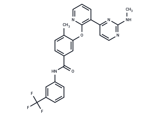 SMILESO=C(NC1=CC=CC(=C1)C(F)(F)F)C2=CC=C(C(OC=3N=CC=CC3C4=NC(=NC=C4)NC)=C2)C
