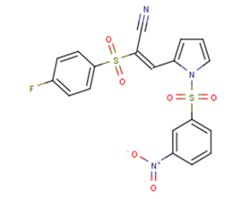 SMILES[O-][N+](=O)c1cccc(c1)S(=O)(=O)n1cccc1\C=C(/C#N)S(=O)(=O)c1ccc(F)cc1