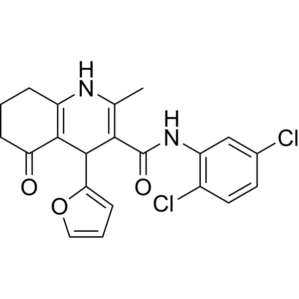 SMILESCC1=C(C(c2ccco2)C2=C(CCCC2=O)N1)C(=O)Nc1cc(Cl)ccc1Cl