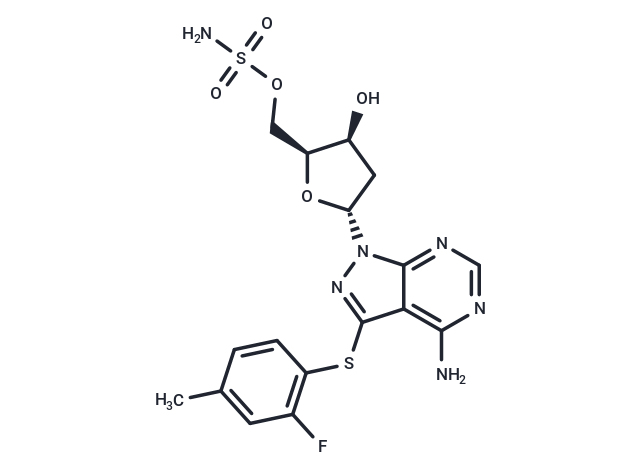 SMILESS(C=1C=2C(N(N1)[C@@H]3O[C@@H](COS(N)(=O)=O)[C@@H](O)C3)=NC=NC2N)C4=C(F)C=C(C)C=C4