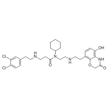 化学全称Propanamide, N-cyclohexyl-3-[[2-(3,4-dichlorophenyl)ethyl]amino]-N-[2-[[2-(3,4-dihydro-5-hydroxy-3-oxo-2H-1,4-benzoxazin-8-yl)ethyl]amino]ethyl]-