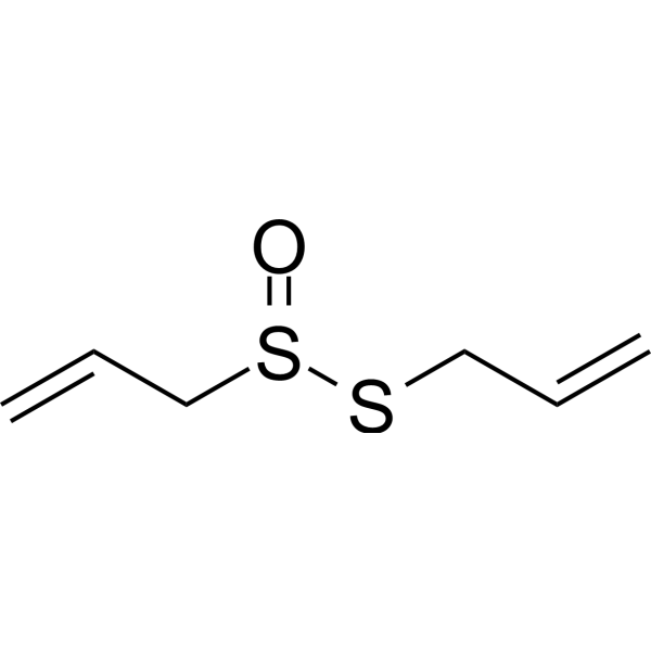 体外实验Allicin exhibits comparable MICs (32-64 μg/mL) toward methicillin-resistant S. aureus ATCC 43300, the type strain S. aureus DSM 20231, E. coli DSM 30083, A. baumannii DSM 30007, and C. albicans DSM 1386.