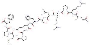 体内实验Apelin-13 (200 μg/kg; IP, daily for 4 weeks) improves cardiac function, improves insulin resistance, improves lipid metabolism, significantly decreases TNF-α and leptin on serum,induces the expression of Apelin-12 in serum and markedly elevates GLUT4 and p-AMPKα2 levels.Apelin-13 (10 and 100 μM; ICV, single dosage) increases the spontaneous discharges in the majority of pallidal neurons. Animal Model:Goto-Kakizaki (GK) rats (12 weeks old; 240-280 g; fed with a high-fat diet: 66.5% standard chow, 10% lard, 20% sucrose, 2.5% cholesterol and 1% pig bile salt)Dosage:200 μg/kg Administration:IP, daily for 4 weeks Result:Significantly decreased heart rate; lowered the levels of fasting plasma glucose (FPG), fasting insulin (FINS) and homeostasis model assessment for insulin resistancey (HOMA-IR); decreased serum levels of total cholesterol (TC), triglyceride (TG) and low density lipoprotein-cholesterol (LDL-C) and increased high density lipoprotein-cholesterol (HDL-C); decreased NO level, cNOS activity, TNF-α and leptin in serum; induced the expression of Apelin-12.Animal Model:Adult Wistar rats (SPF, 8-10 weeks, 240-280 g)Dosage:10 and100 μM Administration:ICV, single dosage Result:Increased the spontaneous discharges in the majority of pallidal neurons.