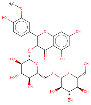 SMILESCOc(cc(cc1)C(Oc(cc(cc2O)O)c2C2=O)=C2O[C@@H]([C@@H]([C@H]2O)O)O[C@H](CO[C@@H]([C@@H]([C@H]3O)O)O[C@H](CO)[C@H]3O)[C@H]2O)c1O