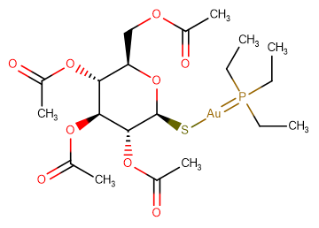 SMILESCC(OC[C@H]1O[C@@H](S[Au]=P(CC)(CC)CC)[C@H](OC(C)=O)[C@@H](OC(C)=O)[C@@H]1OC(C)=O)=O