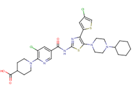 SMILESO=C(Nc1nc(-c2cc(Cl)cs2)c(N2CCN(C3CCCCC3)CC2)s1)c1cnc(N2CCC(C(=O)O)CC2)c(Cl)c1