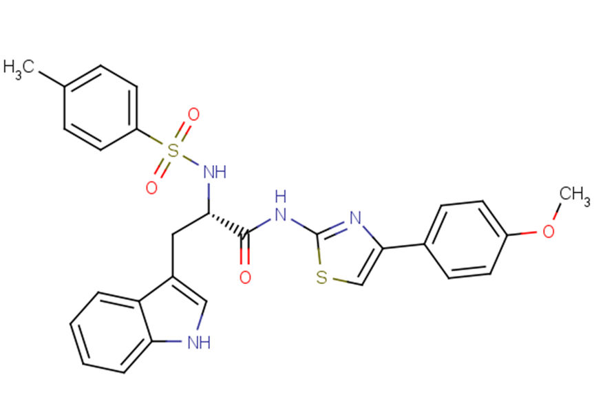 SMILESCOC1=CC=C(C=C1)C1=CSC(NC(=O)[C@H](CC2=CNC3=CC=CC=C23)NS(=O)(=O)C2=CC=C(C)C=C2)=N1