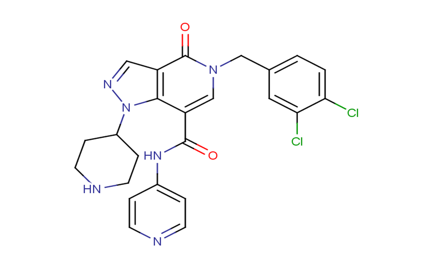 SMILESO=C(NC1=CC=NC=C1)C(C2=C3C=NN2C4CCNCC4)=CN(CC5=CC=C(Cl)C(Cl)=C5)C3=O