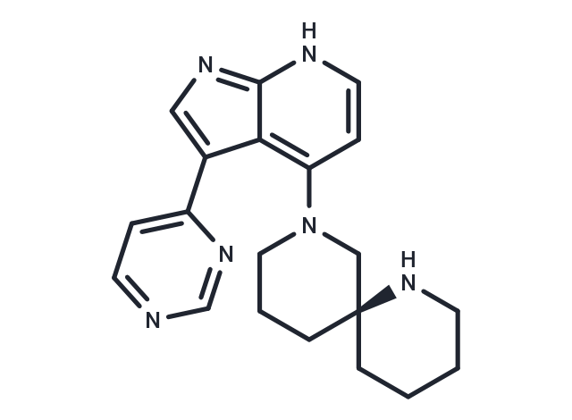 SMILESC1CC[C@@]2(CCCN(C2)c2cc[nH]c3ncc(-c4ccncn4)c23)NC1