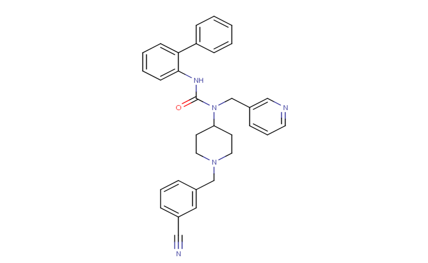 SMILESC1CN(CCC1N(CC2=CN=CC=C2)C(=O)NC3=CC=CC=C3C4=CC=CC=C4)CC5=CC(=CC=C5)C#N