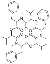 SMILESO=C([C@H](CC1=CC=CC=C1)N(C)C([C@@H](C(C)C)OC([C@H](CC2=CC=CC=C2)N(C)C([C@@H](C(C)C)OC([C@H](CC3=CC=CC=C3)N4C)=O)=O)=O)=O)O[C@H](C(C)C)C4=O