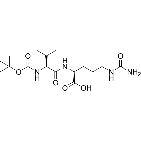 Boc-Val-Cit-OH 是一种可裂解的 ADC 连接子,用于合成抗体药物偶联物 (ADC)。