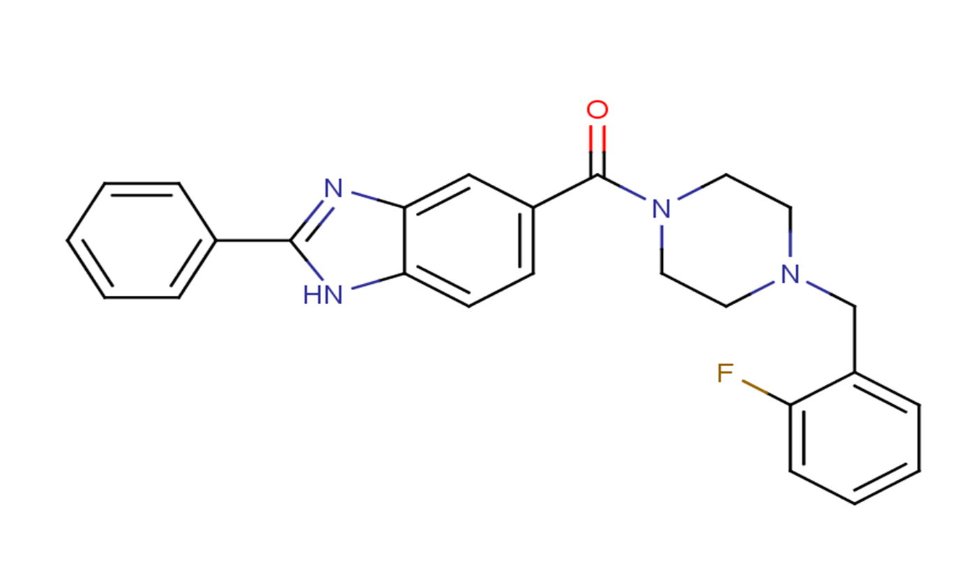 SMILESO=C(N1CCN(CC2=CC=CC=C2F)CC1)C3=CC=C4NC(C5=CC=CC=C5)=NC4=C3