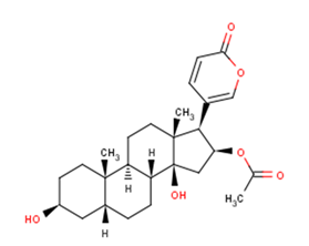 体外实验Bufotalin (0.1-2.5 μM; 12-96 hours) treatment dose- and time-dependently inhibits MG-63 osteoblastoma cell survival. Bufotalin (0.5-2.5 μM; 48 hours) treatment dose-dependently increases the percentage of Annexin V positive cells (apoptotic cells) and caspase-12 activity in MG-63 cells. Bufotalin-induced osteoblastoma cell apoptosis is associated with caspase-12 activation. Bufotalin (0.5-2.5 μM; 12 hours) treatment dose-dependently induces C/EBP homologous protein (CHOP) expression as well as PERK and IRE1 phosphorylation in MG-63 cells. Bufotalin induces endoplasmic reticulum (ER) stress activation in cells. Bufotalin treatment induces cell cycle arrest at G2/M phase through down-regulation of Aurora A, CDC25, CDK1, cyclin A and cyclin B1, as well as up-regulation of p53 and p21 in HepG2 cells. Bufotalin treatment also induces apoptosis which was accompanied by decrease in mitochondrial membrane potential, increases in intracellular calcium level and reactive oxygen species production, activations of caspase-9 and -3, cleavage of poly ADP-ribose polymerase (PARP) as well as changes in the expressions of bcl-2 and bax.Cell Viability Assay Cell Line:MG-63 osteoblastoma cells Concentration:0.1 μM, 0.5 μM, 1 μM, 2.5 μM Incubation Time:12 hours, 24 hours, 48 hours, 72 hours, 96 hours Result:Inhibited MG-63 osteoblastoma cell survival. Apoptosis Analysis Cell Line:MG-63 cells Concentration:0.5 μM, 1 μM, 2.5 μM Incubation Time:48 hours Result:Dose-dependently increased the percentage of Annexin V positive cells (apoptotic cells) and caspase-12 activity in MG-63 cells.Western Blot Analysis Cell Line:MG-63 cells Concentration:0.5 μM, 1 μM, 2.5 μM Incubation Time:12 hours Result:Dose-dependently induced CHOP expression as well as PERK and IRE1 phosphorylation in MG-63 cells.