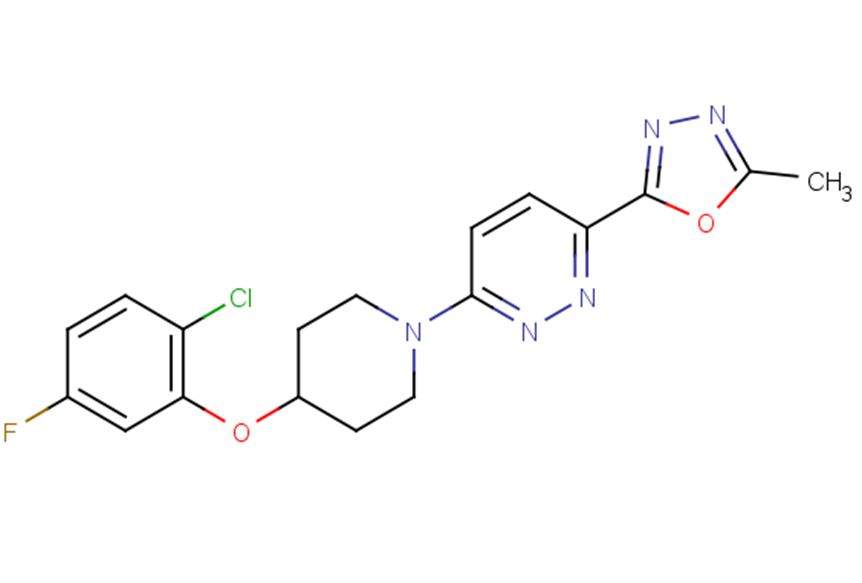 SMILESCc1nnc(o1)-c1ccc(nn1)N1CCC(CC1)Oc1cc(F)ccc1Cl