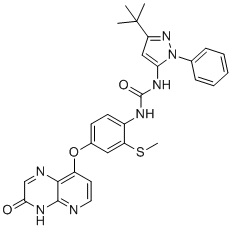化学全称1-(3-(tert-butyl)-1-phenyl-1H-pyrazol-5-yl)-3-(2-(methylthio)-4-((3-oxo-3,4-dihydropyrido[2,3-b]pyrazin-8-yl)oxy)phenyl)urea
