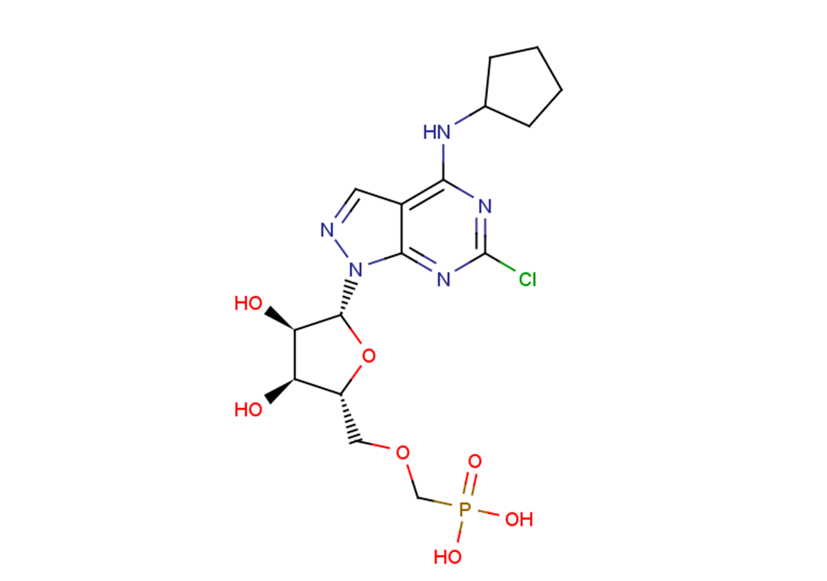 SMILESO[C@H]1[C@H](N2N=CC3=C(NC4CCCC4)N=C(Cl)N=C32)O[C@H](COCP(O)(O)=O)[C@H]1O