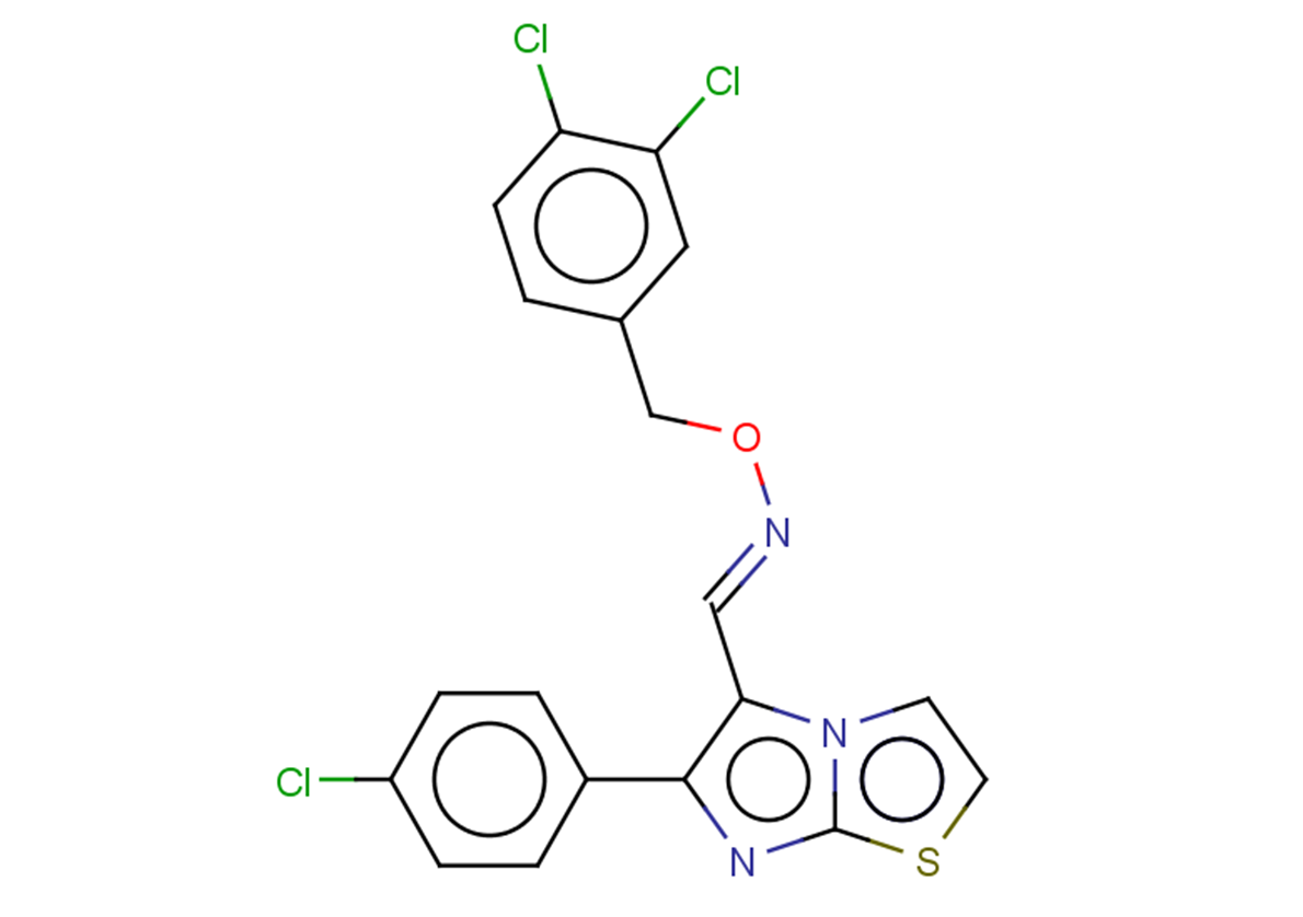 SMILESClc(cc1)ccc1-c1c(/C=N/OCc(cc2)cc(Cl)c2Cl)n(ccs2)c2n1