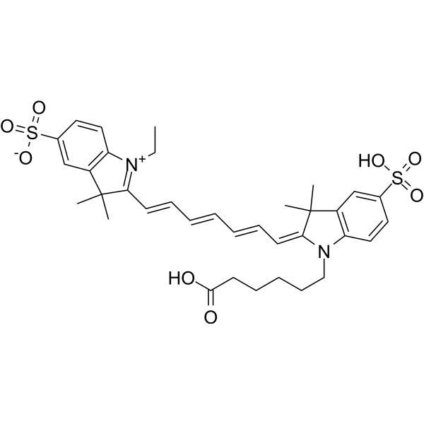SMILESCC[N+]1=C(\C=C\C=C\C=C\C=C2\N(CCCCCC(O)=O)c3ccc(cc3C2(C)C)S(O)(=O)=O)C(C)(C)c2cc(ccc12)S([O-])(=O)=O