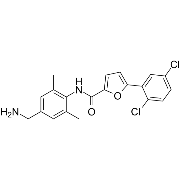 SMILESCc1cc(CN)cc(C)c1NC(=O)c1ccc(o1)-c1cc(Cl)ccc1Cl