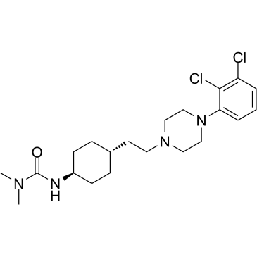 Cariprazine 是一种新型抗精神病候选化合物,对 D3 (Ki=0.085 nM) 和 D2 (Ki=0.49 nM) 受体具有高亲和力,对 5-HT1A 受体具有中等亲和力 (Ki=2.6 nM)。