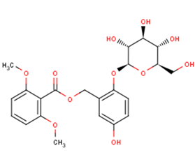 化学全称[5-Hydroxy-2-[(2S,3R,4S,5S,6R)-3,4,5-trihydroxy-6-(hydroxymethyl)oxan-2-yl]oxyphenyl]methyl 2,6-dimethoxybenzoate