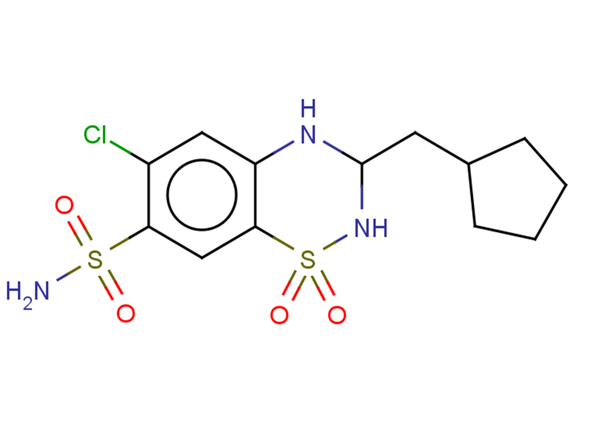 环哌噻嗪是一种噻嗪类利尿剂,用于治疗高血压和心力衰竭。它减少钙离子和尿酸的排泄,增加钠和钾离子的排泄。