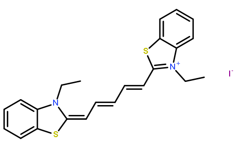 SMILESCCN\\1C2=CC=CC=C2S/C1=C\\C=C\\C=C\\C3=[N+](C4=CC=CC=C4S3)CC.[I-]