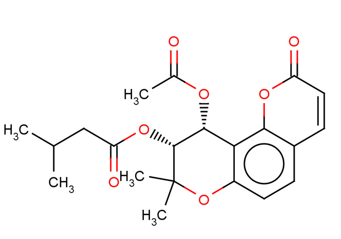 SMILESCC(C)CC(O[C@H]([C@@H]1OC(C)=O)C(C)(C)Oc(cc2)c1c(O1)c2C=CC1=O)=O