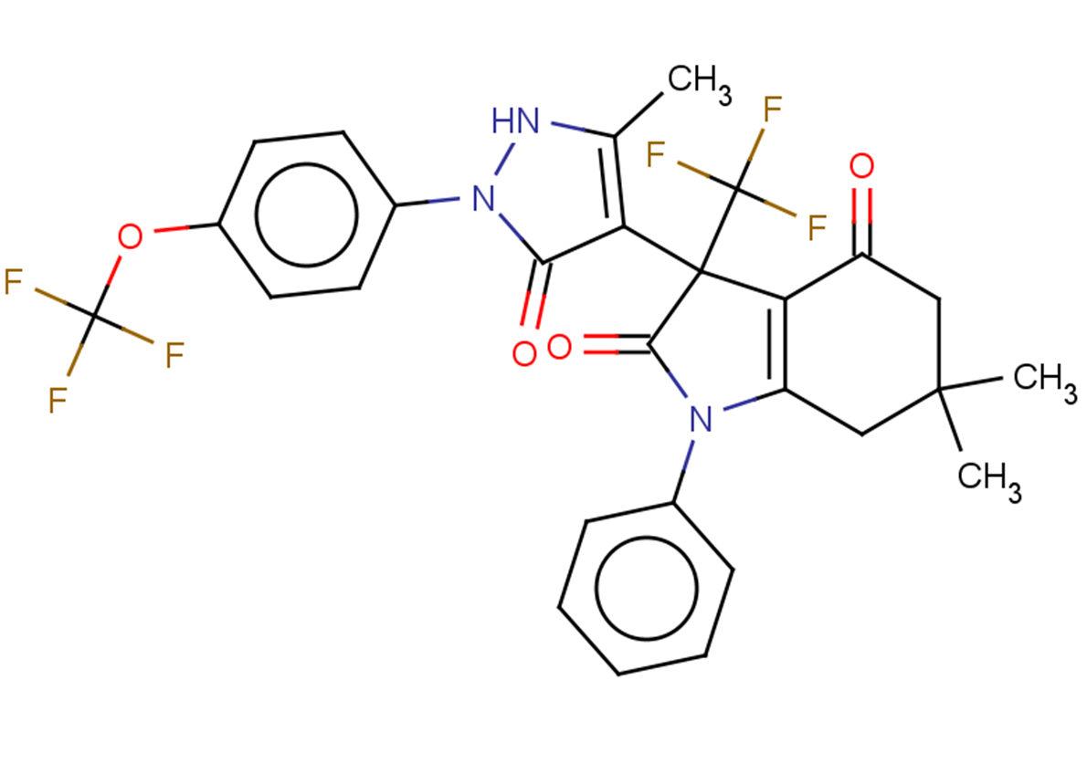 SMILESCC(C)(CC(N1c2ccccc2)=C2C(C(F)(F)F)(C(C3=O)=C(C)NN3c(cc3)ccc3OC(F)(F)F)C1=O)CC2=O