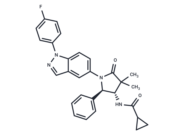 SMILESN(C(=O)C1CC1)[C@@H]2[C@H](N(C(=O)C2(C)C)C=3C=C4C(=CC3)N(N=C4)C5=CC=C(F)C=C5)C6=CC=CC=C6