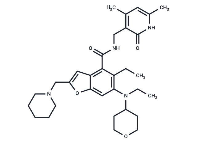SMILESCCN(C1CCOCC1)c1cc2oc(CN3CCCCC3)cc2c(C(=O)NCc2c(C)cc(C)[nH]c2=O)c1CC