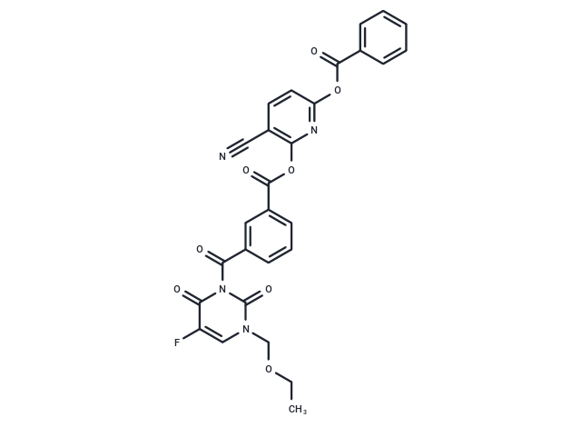 SMILESC(=O)(N1C(=O)N(COCC)C=C(F)C1=O)C2=CC(C(OC3=C(C#N)C=CC(OC(=O)C4=CC=CC=C4)=N3)=O)=CC=C2