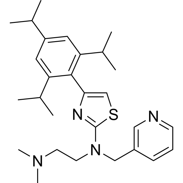 SMILESCC(C)c1cc(C(C)C)c(-c2csc(n2)N(CCN(C)C)Cc2cccnc2)c(c1)C(C)C