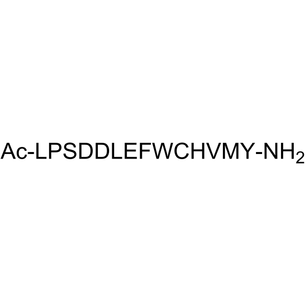 一种有效的 FZD7受体 的肽拮抗剂,选择性地结合到 FZD7 CRD 亚类,并改变 CRD 的构象及其脂质结合槽的结构。人和小鼠 FZD7 CRD 的EC50 值分别为 58 和 34 nM。Fz7-21 损害 FZD7 在 Wnt-β-catenin 信号传导中的功能和肠类器官中的干细胞功能。