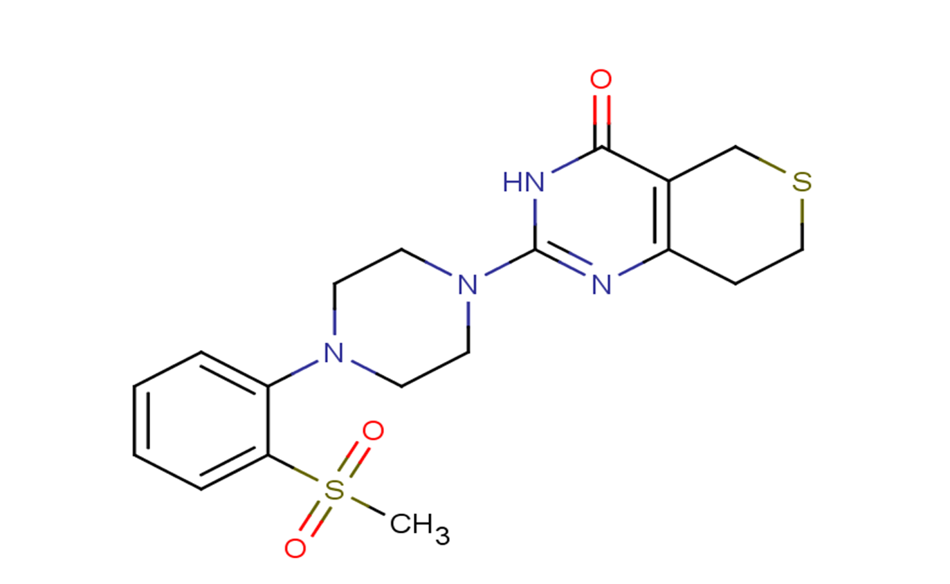 SMILESCS(=O)(=O)C1=CC=CC=C1N2CCN(CC2)C3=NC4=C(CSCC4)C(=O)N3