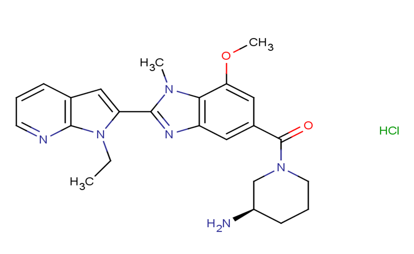 SMILESCCN1C(=CC2=C1N=CC=C2)C3=NC4=C(N3C)C(=CC(=C4)C(=O)N5CCC[C@H](C5)N)OC.Cl