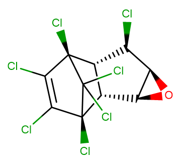SMILES[C@@H]12[C@@H]([C@H]([C@@H]3[C@H]1O3)Cl)[C@]4(C(=C([C@@]2(C4(Cl)Cl)Cl)Cl)Cl)Cl