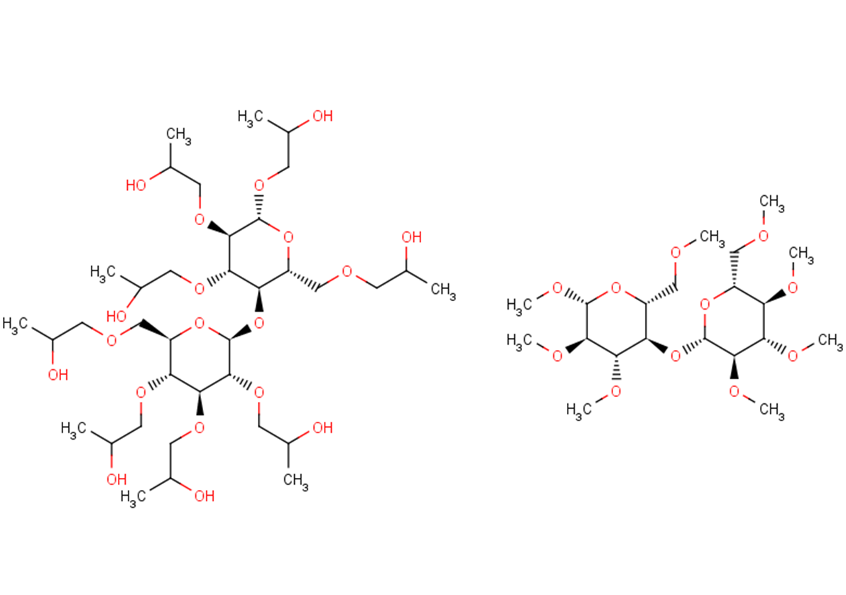 SMILESCC(O)COC[C@H]1O[C@@H](O[C@H]2[C@H](OCC(O)C)[C@@H](OCC(O)C)[C@H](OCC(O)C)O[C@@H]2COCC(O)C)[C@H](OCC(O)C)[C@@H](OCC(O)C)[C@@H]1OCC(O)C.COC[C@H]3O[C@@H](O[C@H]4[C@H](OC)[C@@H](OC)[C@H](OC)O[C@@H]4COC)[C@H](OC)[C@@H](OC)[C@@H]3OC