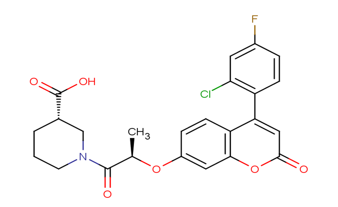 同义词3-Piperidinecarboxylic acid, 1-[(2R)-2-[[4-(2-chloro-4-fluorophenyl)-2-oxo-2H-1-benzopyran-7-yl]oxy]-1-oxopropyl]-, (3S)- | LDC203974