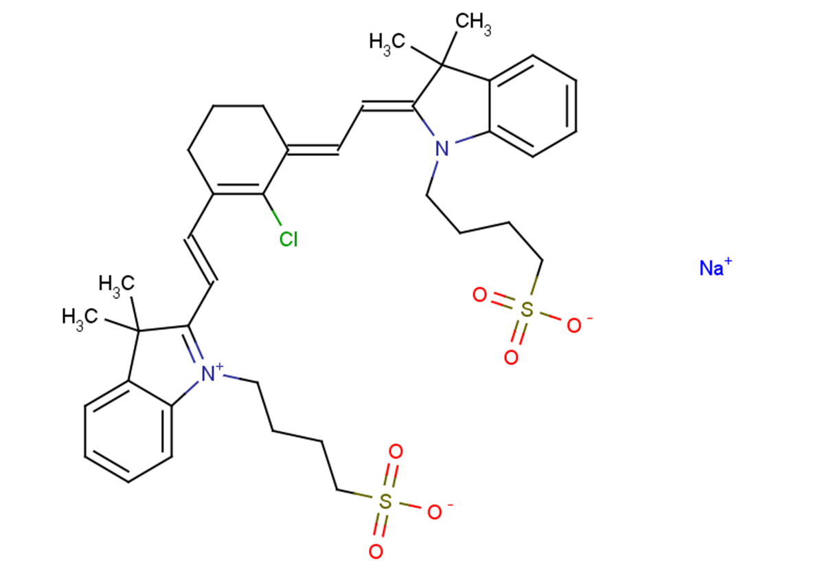 SMILESClC1=C(/C=C/C2=[N+](C3=CC=CC=C3C2(C)C)CCCCS([O-])(=O)=O)CCC/C1=C\C=C4C(C)(C5=CC=CC=C5N\4CCCCS([O-])(=O)=O)C.[Na+]